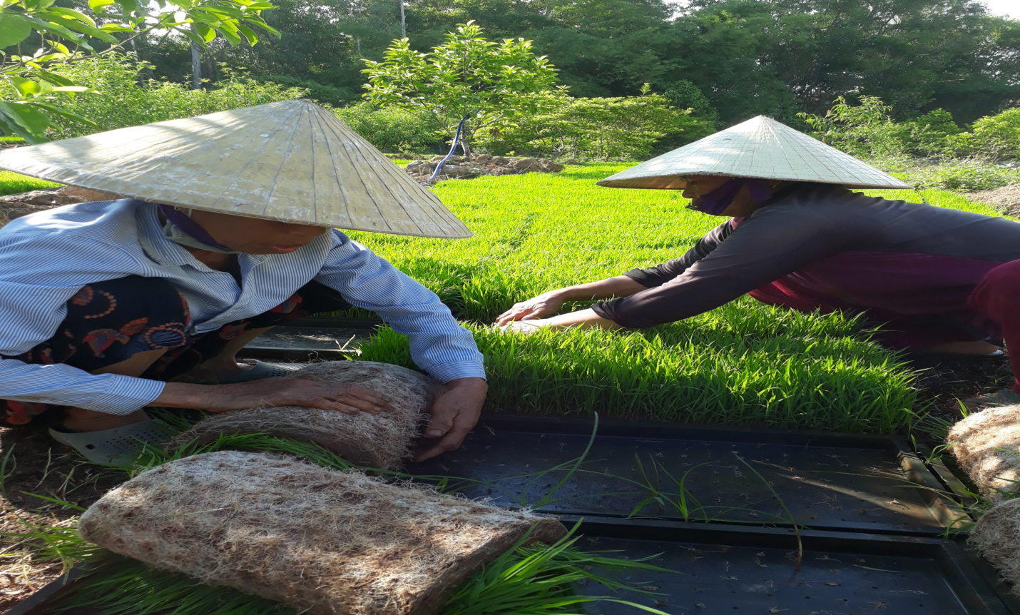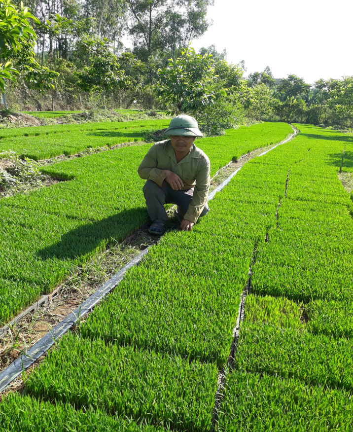 Vụ Xuân 2021, anh bắt đầu đầu tư 01 máy cấy cầm tay trị giá 70 triệu, vụ đầu tiên triển khai thực được 3,0 ha nhưng anh gặp không ít khó khăn do bà con nông dân chưa quen với việc cấy máy (mật độ bình quân 21- 23 khóm/m2) so với hiện tại bà con đang cấy mật độ 35- 38 khóm/m2. Sau khi anh cấy máy xong, một số hộ còn cấy xen vào hàng sông cho đỡ thưa, một số hộ còn bắt anh cam kết năng suất cuối vụ, ……Rồi vụ sản xuất đó đã kết thúc, năng suất lúa cấy máy cao hơn bà con cấy tay 20-40kg/sào, chi phí giảm hơn so với cấy truyền thống. Kết quả đó đã tạo được lòng tin nơi người dân nên vụ Hè thu anh đã tổ chức cấy máy được 12,0 ha.